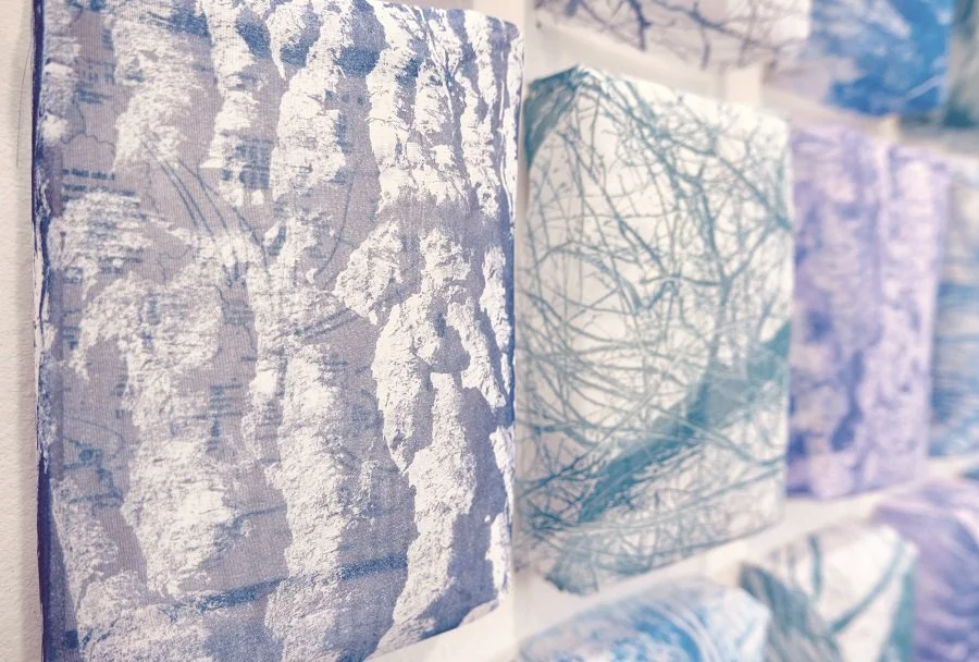A detail of Siennie Lee’s A Witness Tree, an ongoing series that overlays lithography prints on chiffon over cyanotype. (Photo courtesy the artist)
