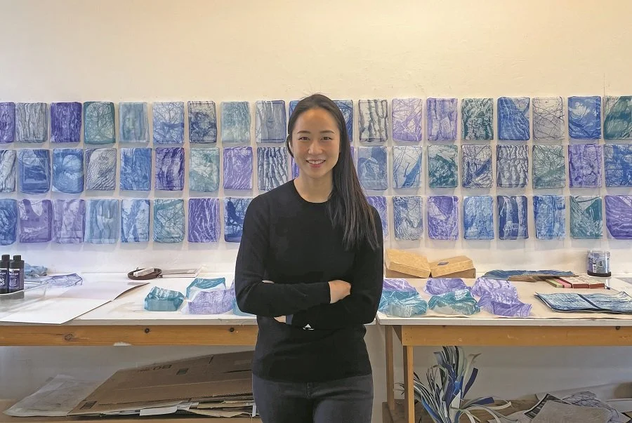 Siennie Lee in her studio with A Witness Tree.